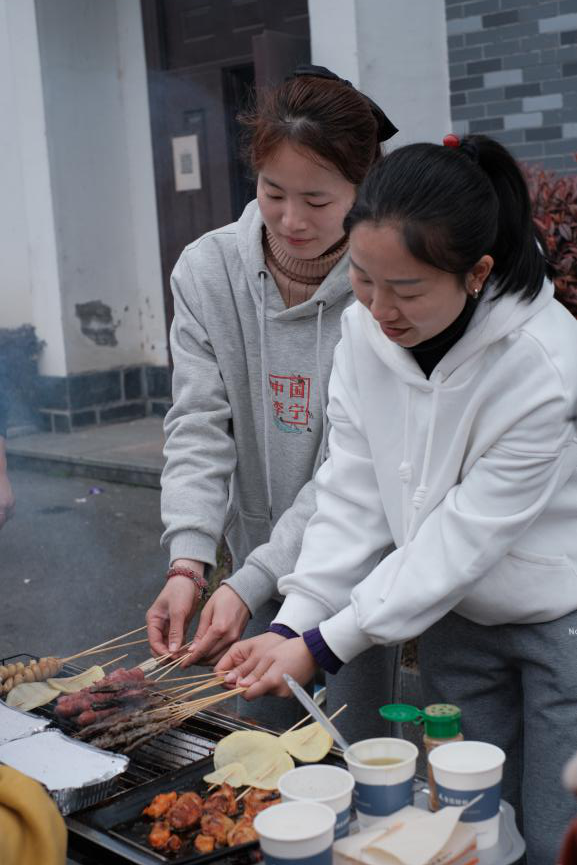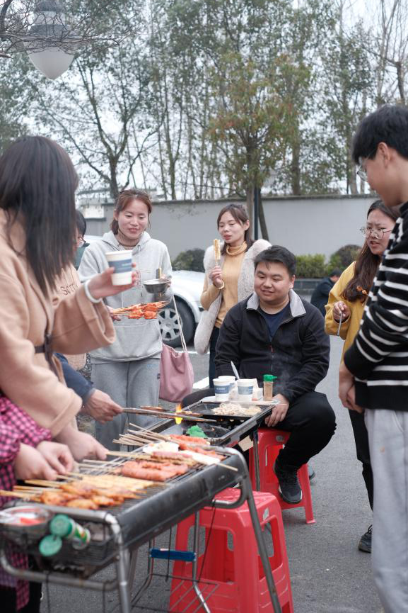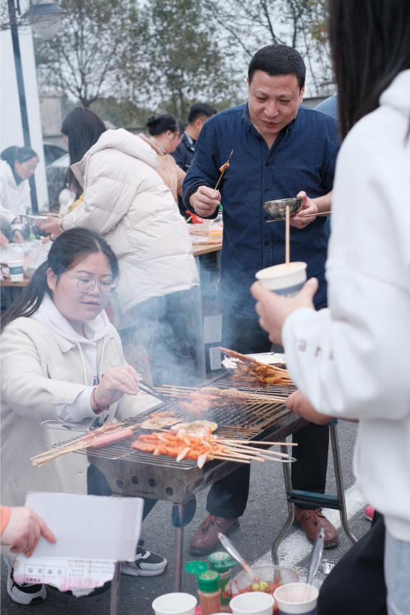 徒步歸來,美味燒烤靚麗登場。你看,食材琳瑯滿目,爐火歡快跳動,大家興致高漲,紛紛展示各自的看家燒烤技藝,其樂融融。羊肉串、雞翅膀、粉絲扇貝、臭豆腐等幾十種食材輪番上陣,使味蕾和舌尖得到刺激和滿足。
