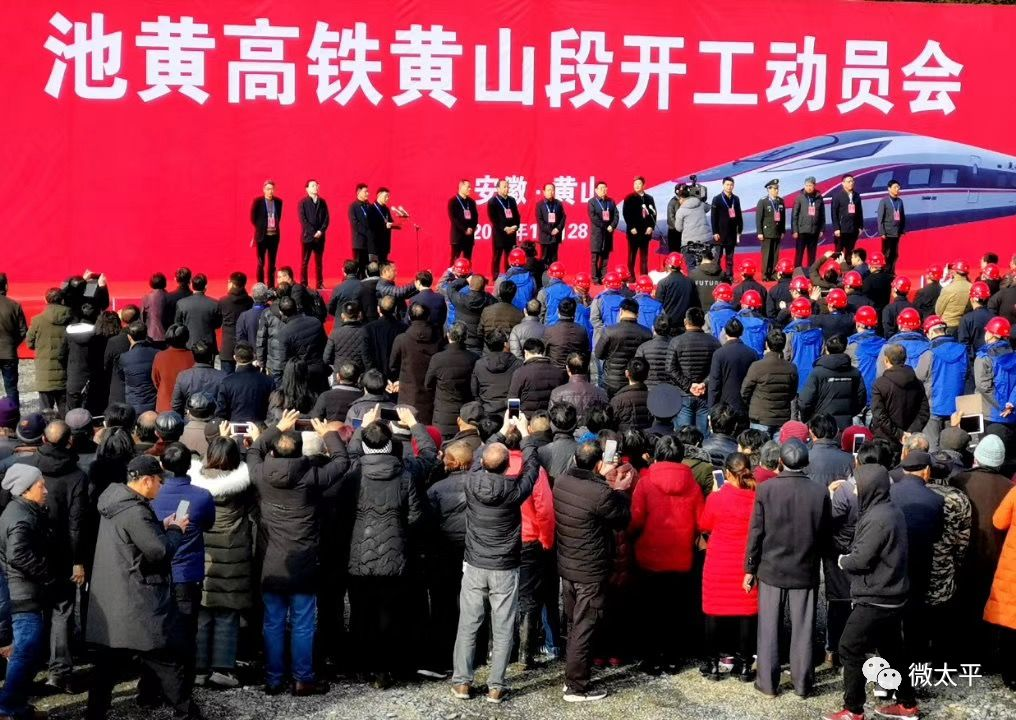 (上圖為2019年12月28日,池黃高鐵黃山段開工儀式在黃山市黃山區(qū)甘棠鎮(zhèn)舉行。)