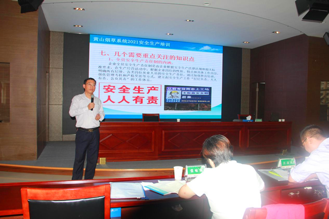 2021年10月15日,黃山市煙草專賣局(公司)企業(yè)安全生產(chǎn)培訓(xùn)班在市公司駐地順利舉辦。黃山市應(yīng)急管理局副局長(zhǎng)吳永杰作開(kāi)班動(dòng)員講話,并就近期全國(guó)安全生產(chǎn)形勢(shì)進(jìn)行通報(bào),對(duì)行業(yè)相關(guān)工作作出部署和要求。市局領(lǐng)導(dǎo)班子、局機(jī)關(guān)各職能部門及徽州皖韻酒店,各區(qū)縣局(營(yíng)銷部)負(fù)責(zé)人、安全生產(chǎn)管理人員近70余人參加培訓(xùn)。我安徽正億安全技術(shù)服務(wù)有限公司承擔(dān)培訓(xùn)內(nèi)容準(zhǔn)備和課程安排等工作。