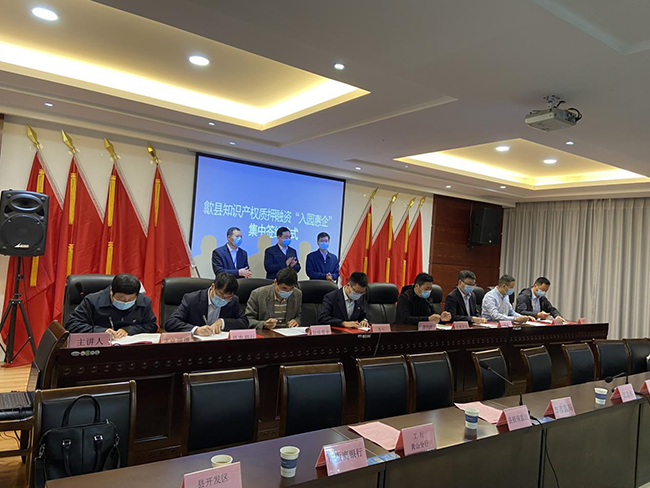4月20日至26日是全國知識產(chǎn)權(quán)宣傳周,今年活動的主題是:全面開啟知識產(chǎn)權(quán)強國建設(shè)新征程。4月21日,歙縣市場監(jiān)管局聯(lián)合歙縣經(jīng)濟開發(fā)區(qū)在歙縣招商投資服務(wù)中心召開歙縣首場知識產(chǎn)權(quán)質(zhì)押融資“ 入園惠企”銀企對接會。市市場監(jiān)管局副局長黃劍、縣市場監(jiān)管局局長江志偉、縣經(jīng)濟開發(fā)區(qū)管委副主任潘利青、縣銀保監(jiān)組主任吳志捷出席會議。歙縣50家高新技術(shù)企業(yè),市、縣8家金融機構(gòu)和資產(chǎn)評估、保險和知識產(chǎn)權(quán)代理等機構(gòu)共同參加此次活動。