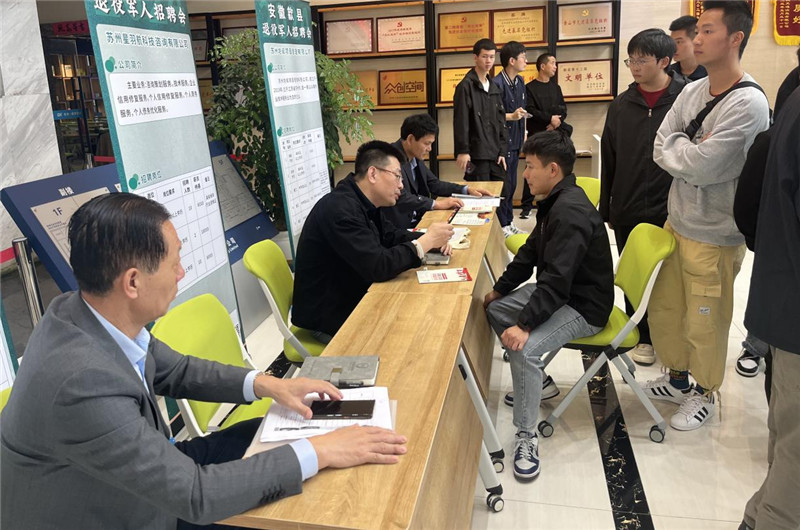 最后,組織參訓學員參加由歙縣退役軍事務局與江蘇太倉市退役軍人事務局聯合舉辦的“榮耀黃山”退役軍人專場招聘會,實現退役軍人與兩地企業工作人員面對面溝通,了解市場用人需求,助力退役軍人做好精準擇業和順利就業。